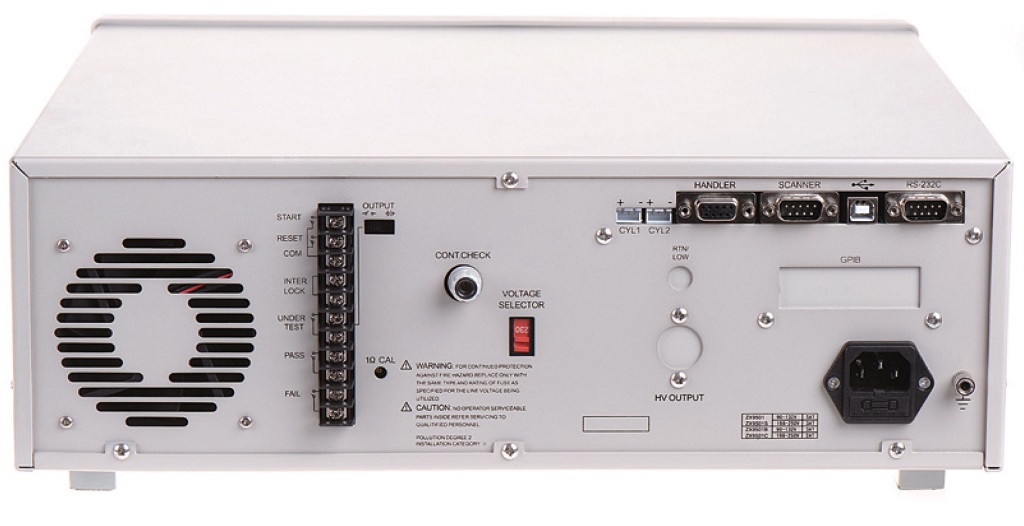 ZX9501絕緣耐壓測試儀可廣泛應用于電子元器件、家用電器、變壓器、儀器儀表、照明電器、電動工具、電熱器計算機、信息類整機的安規綜合測試儀。該系列儀器配備PLC接口、RS232C,并可選配RS485接口、USB device、USB Host、GPIB(選件),可方便地與PC進行數據通訊和遠程控制,以組建自動測試系統。