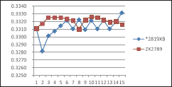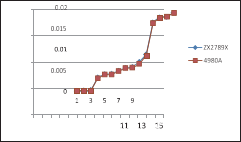 測試速度快了,還必須保證測量數據的穩定性,左圖是兩種不同的 機型,大家都用各自的最快測試速度,掃描測試同一個網絡變壓器同一 個繞組的漏感15次的測量數據分布圖,我們可以看到,ZX2789的測量數 據的一致性要略好一些。