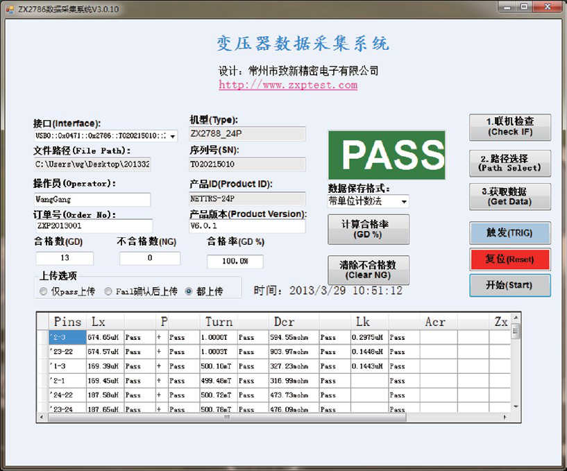 針對客戶需要對變壓器測試儀掃描結果進行統計分析及測試過 程監控的需求,我們為客戶開發了”變壓器數據采集系統”,界面 如右圖所示: